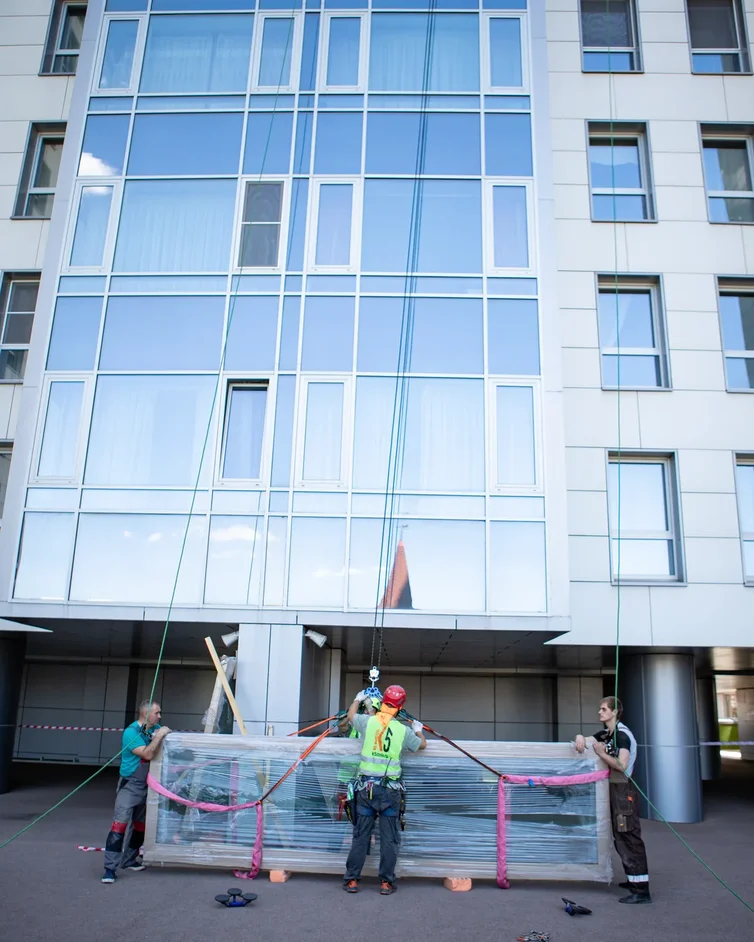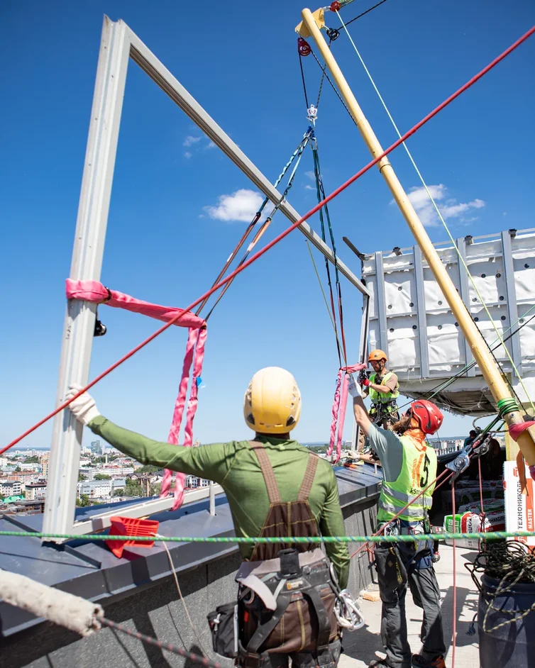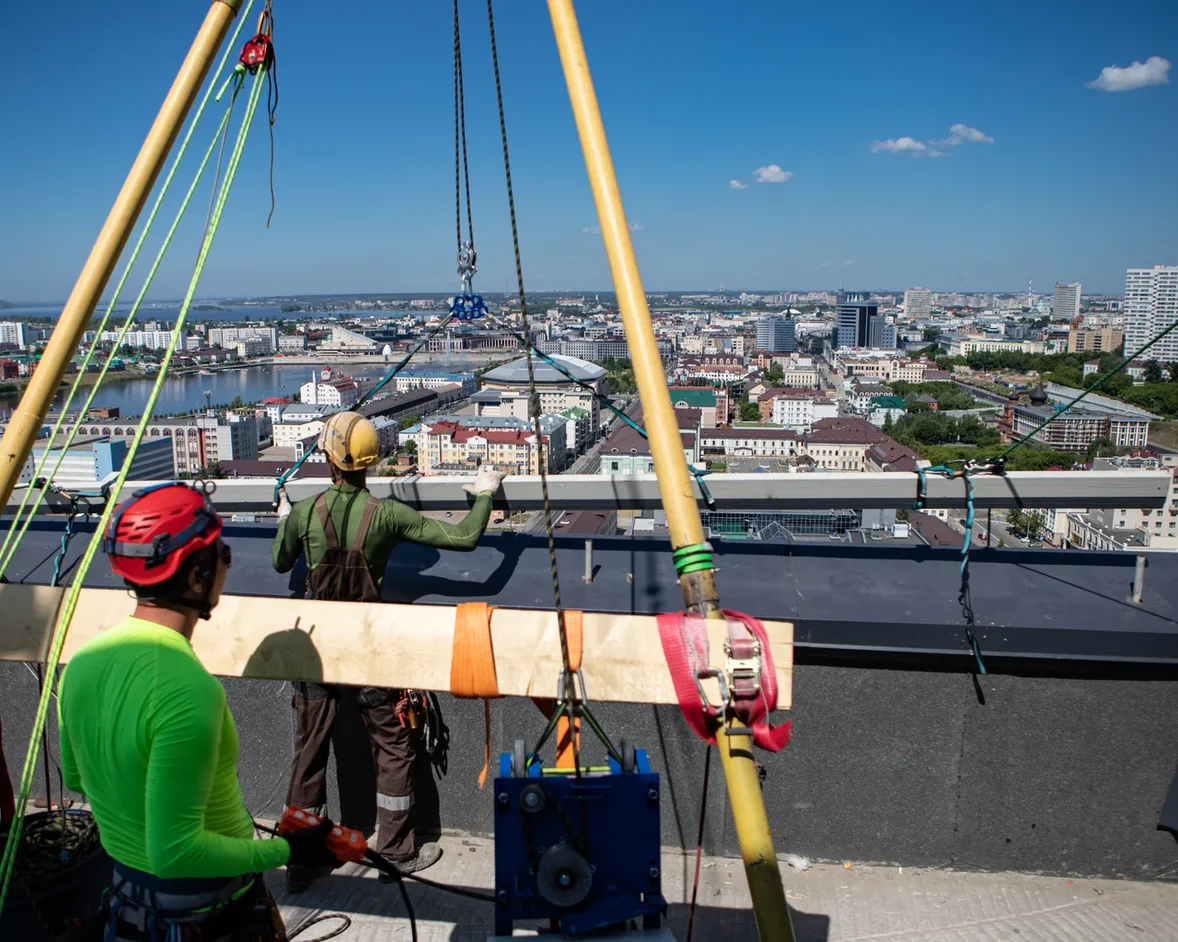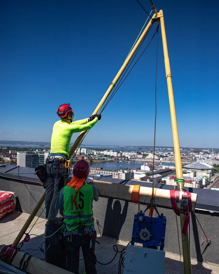 Данный подъем планировался почти полгода, наш технический специалист прилетал в Казань на замеры, осмотр площадки, переговоры с управляющей компанией и обсуждение всех технических и юридических моментов с заказчиком. Далее были переговоры, подписание документов, уточнение параметров рам, стеклопакетов и нагрузок, которые к ним можно прилагать.